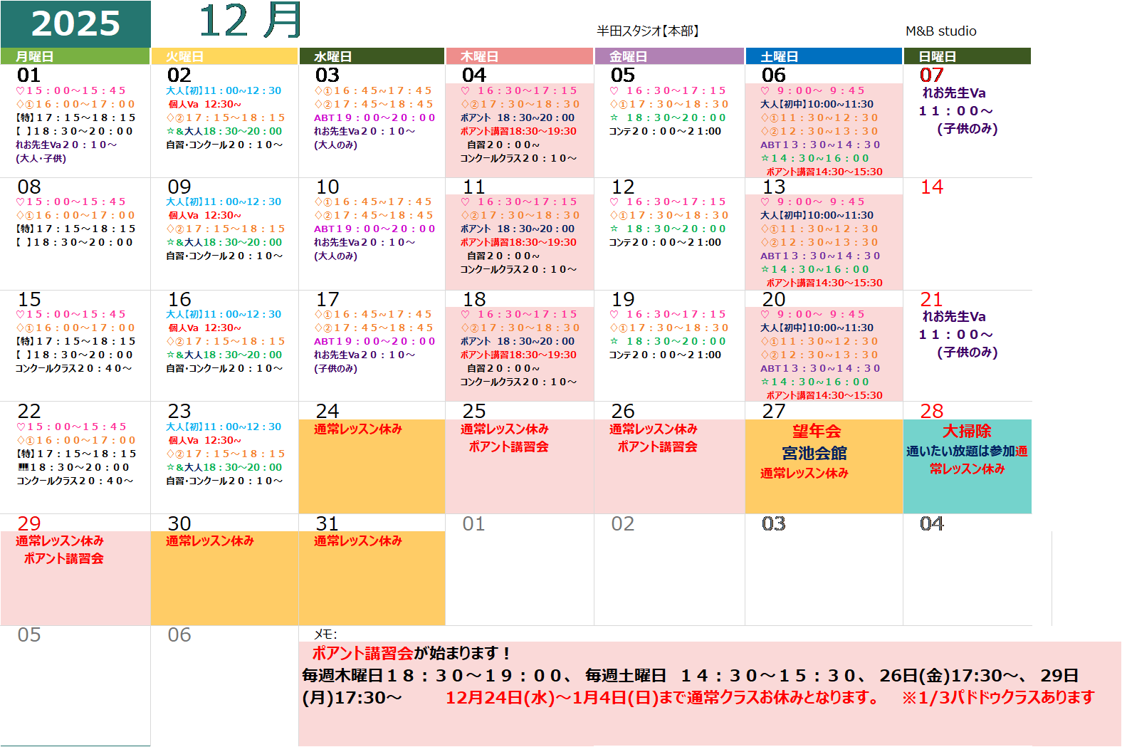 12月のスケジュールをお知らせします